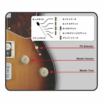 また、2ピックアップ仕様でありながら、5ウェイレバースイッチを搭載しているようです。