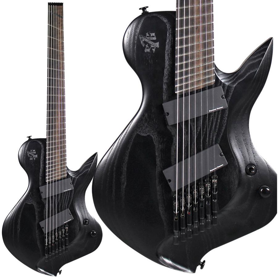 フラットDネックシェイプ、極厚エボニー指板、ステンレスフレット、アッシュボディを採用し、ピックアップは、アッシュボディの硬質なサウンドに合わせてセレクトしたSeymour Duncan Blackouts 8をスラントさせてフロントとリアに装備しているようです。